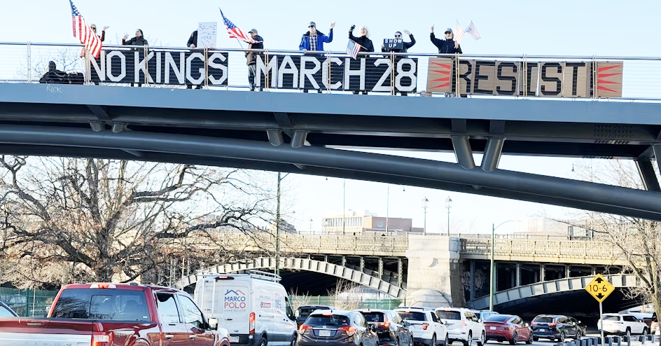 Each week we hold signs and wave flags on Storrow Drive’s Appleton Bridge reaching thousands of drivers encouraging everyone to JOIN THE NEXT NO KINGS rally on Boston Common March 28, with Dropkick Murphys Live!