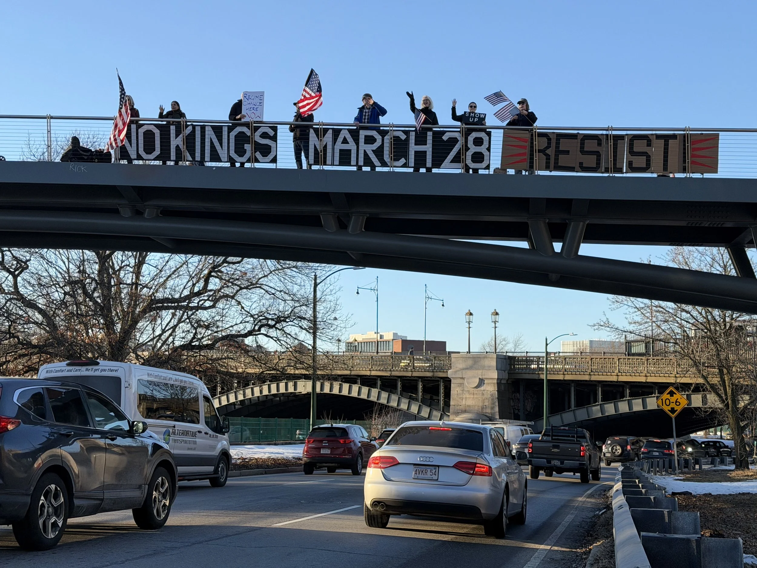 Each week we hold signs and wave flags on Storrow Drive’s Appleton Bridge reaching thousands of drivers encouraging everyone to JOIN THE NEXT NO KINGS rally on Boston Common March 28. with Dropkick Murphys Live!