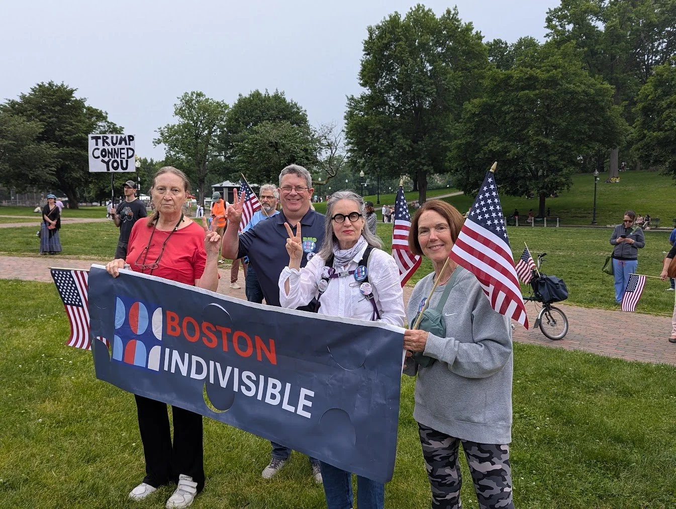But then she thought about history. She thought about the countless times people have come together, performing small acts of defiance and hope–and turning the tide toward democracy and freedom. She says that in Boston Indivisible, she found a way to get involved and stay involved. She found community, hope–and real progress being made.