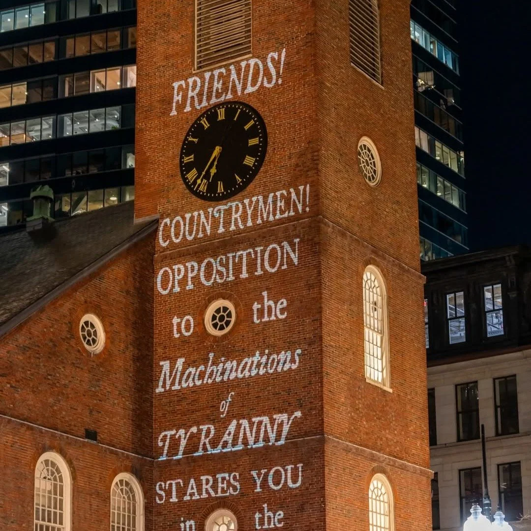 View fullsize Throwing it back to the Boston ICE Tea Party at the Old South Meeting House. 🫖✊ A massive thank you to @jackdarylphotography for these incredible shots and to @silencedogoodboston for the brilliant projections that brought our message to life.